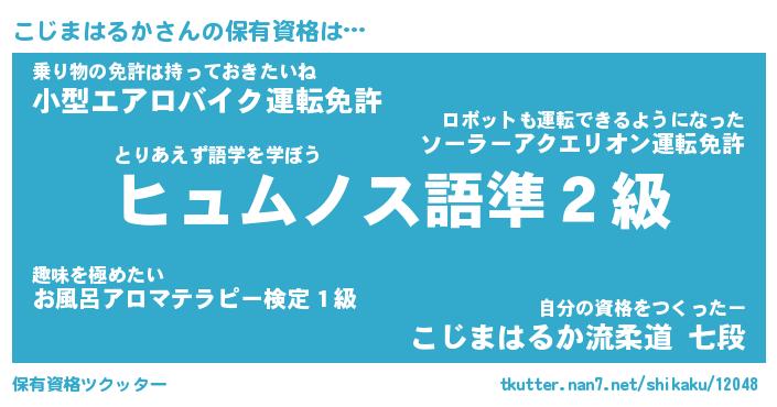 | ツイッター | こじまはるかさんのツイッターID『namakemono_kun』 |