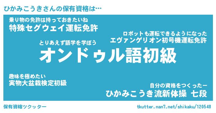 | 自動車の名前っぽいあだ名 | 『ヒカティマ』『ヒクア』『ヒント』 |
