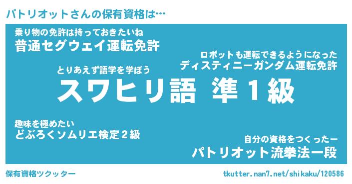| 男性向けラノベタイトル風あだ名 | 『パトリオットの憂鬱』 |