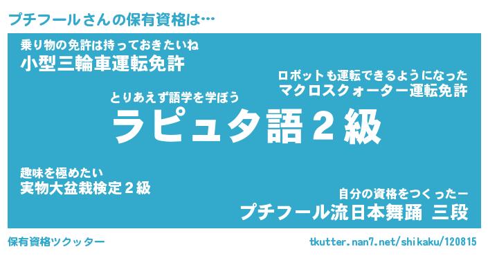 | ファンタジー風あだ名 | 『プチフェル』『エターナルプチフールー』 |