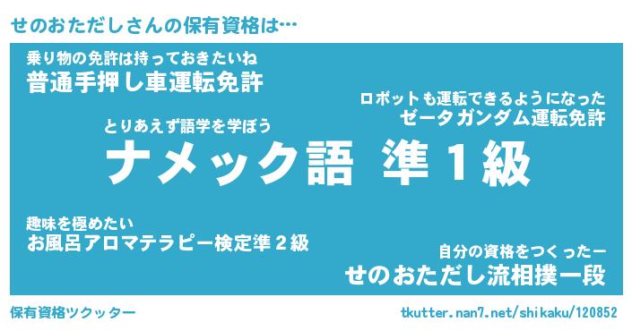 男性向けラノベタイトル風あだ名 | 『せのおただしの憂鬱』 |