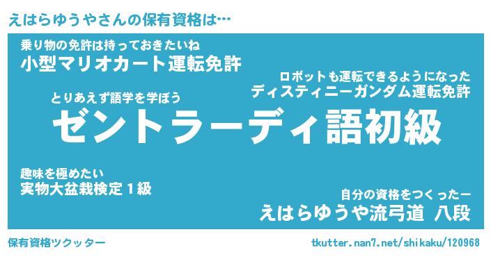 | 胡散臭い通販商品みたいなあだ名 | 『モテモテ間違いなし霊験あらたかなお札…その名も「えはらゆうや」』 |