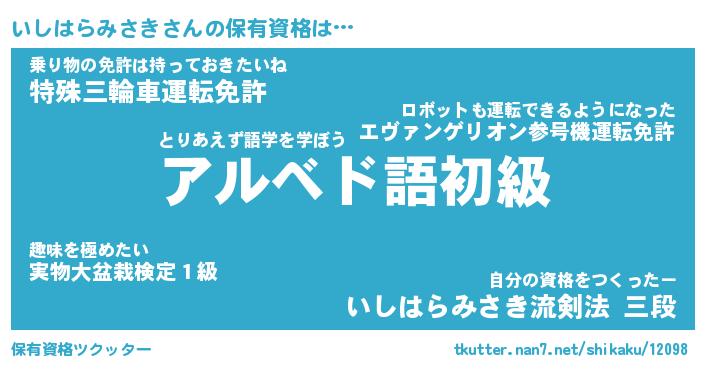 | 伝説のあだ名 | 『不死鳥のスナイパーいしはらみさき』 |