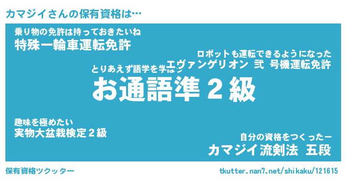 | 男性向けラノベタイトル風あだ名 | 『カマジイの憂鬱』 |