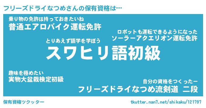 | 料理風あだ名 | 『ほっこり♪フリーズドライなつめの味噌そぼろ煮』 |