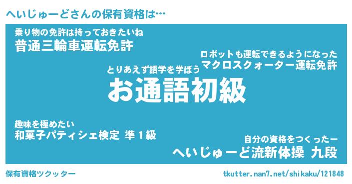| 伝説のあだ名 | 『伝説のスナイパーへいじゅーど』 |