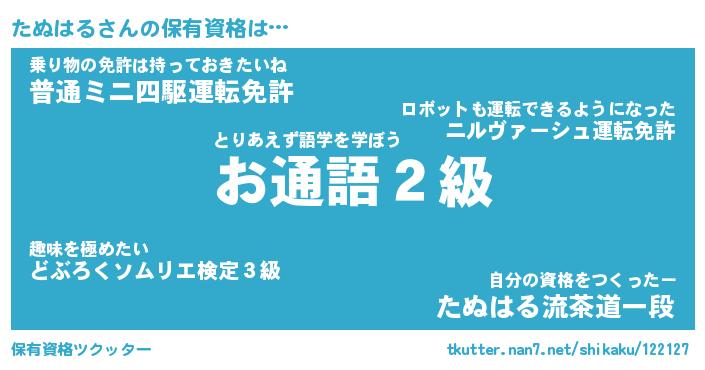| ファンタジー風あだ名 | 『タヌフェル』『エターナルタヌハルー』 |