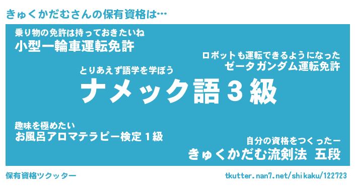 | 男性向けラノベタイトル風あだ名 | 『きゅくかだむの憂鬱』 |