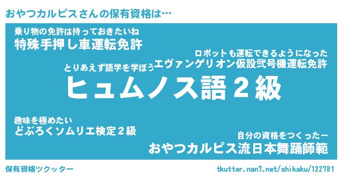| 伝説のあだ名 | 『封印されし竜騎士おやつカルピス』 |