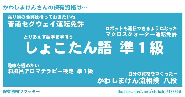 | ヒーロー風カッコイイあだ名 | 『スーパーカワシマケン』『炎刃騎士カワ』 |