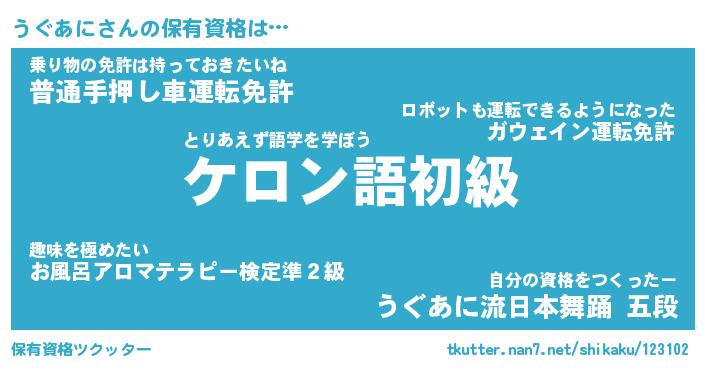| 意味不明あだ名 | 『ペロリンうぐあに』『永久保存うぐあに』 |