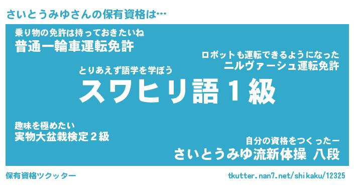| 恥ずかしいあだ名 | 『プリティーさいとうみゆ』『さいっちょ』 |