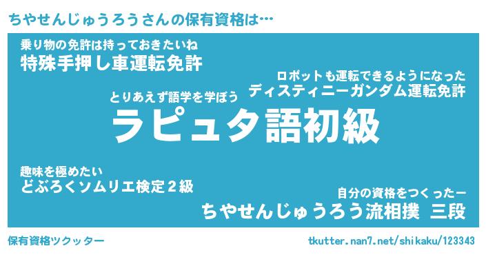 | 男性向けラノベタイトル風あだ名 | 『チヤセンジュウロウアートオンライン』 |