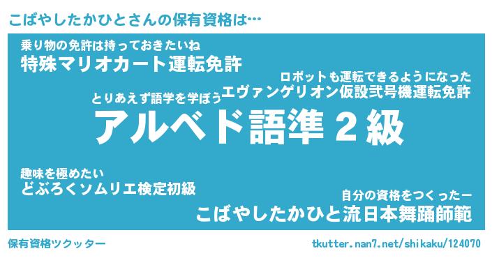 | 伝説のあだ名 | 『不死鳥のスナイパーこばやしたかひと』 |
