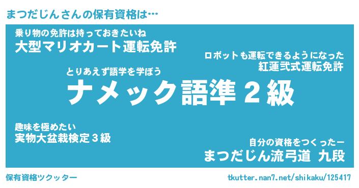 | ヒーロー風カッコイイあだ名 | 『スーパーマツダジン』『黄金騎士マツ』 |
