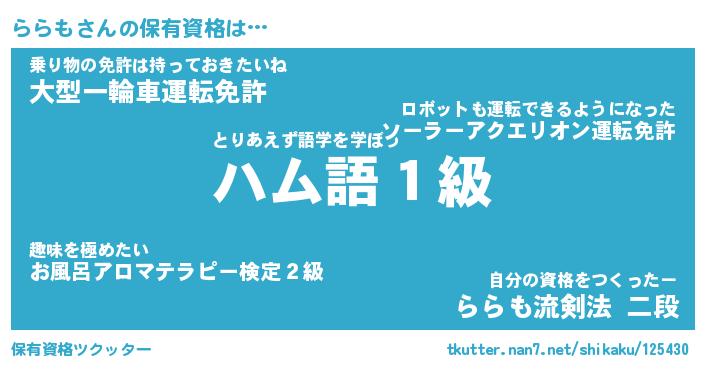| 肩書あだ名 | 『ららも社長』『ららも総理大臣』 |