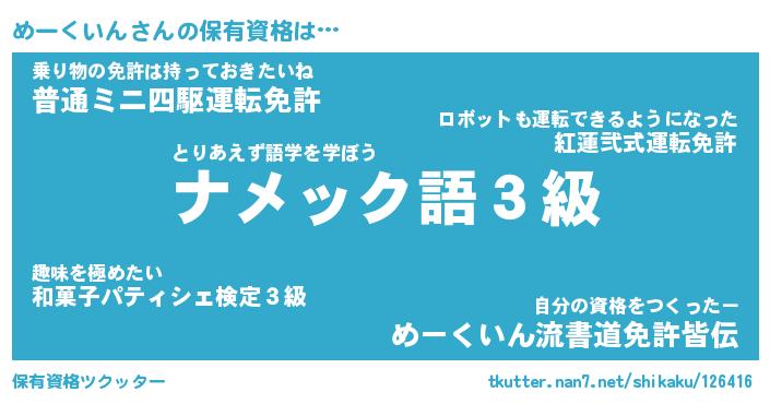 | 男性向けラノベタイトル風あだ名 | 『めーくいんの憂鬱』 |