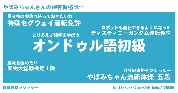 | ヒーロー風カッコイイあだ名 | 『スーパーヤバミチャン』『天弓騎士ヤバ』 |