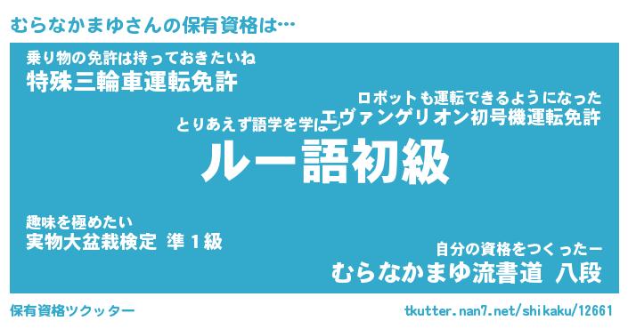 | 男性向けラノベタイトル風あだ名 | 『ムラナカマユアートオンライン』 |