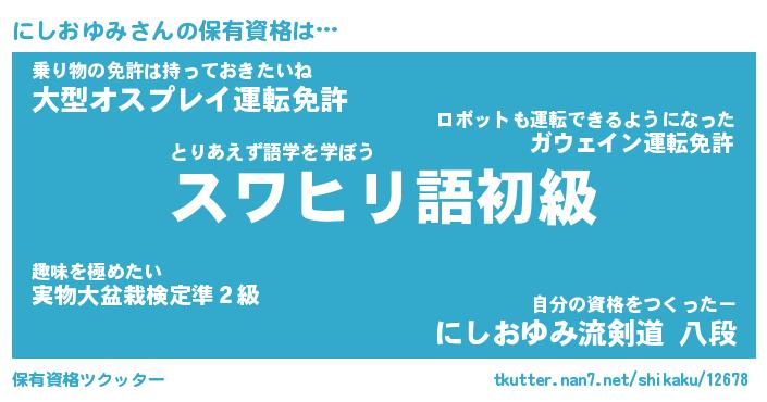 | 肩書あだ名 | 『にしおゆみ御曹司』『にしおゆみ大統領』 |