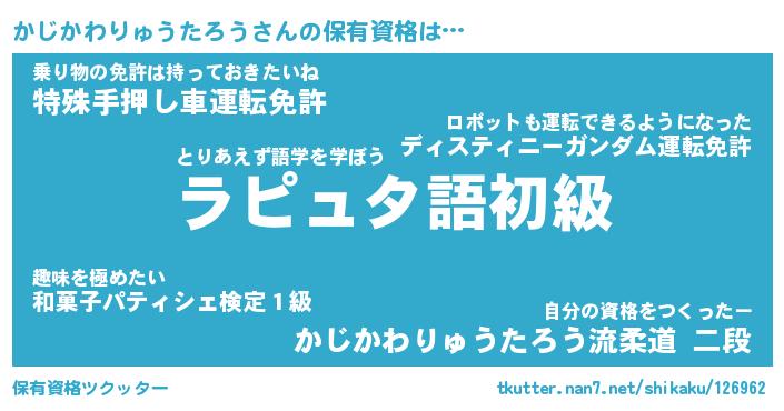 | 意味不明あだ名 | 『ペロリンかじかわりゅうたろう』 |