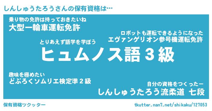 | ツイッター | しんしゅうたろうさんのツイッターID『dendenmushi_idle』 |