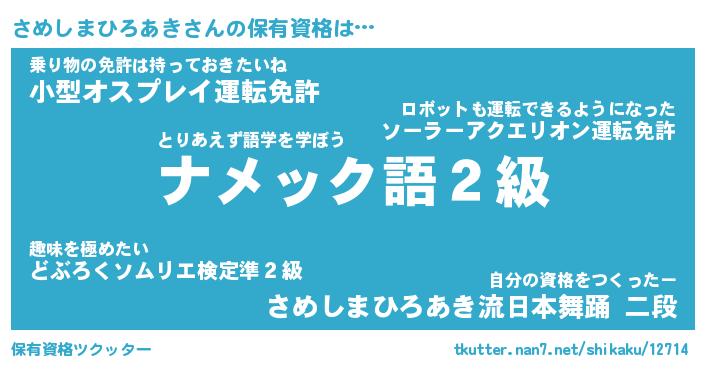 | 男性向けラノベタイトル風あだ名 | 『さめしまひろあきの憂鬱』 |