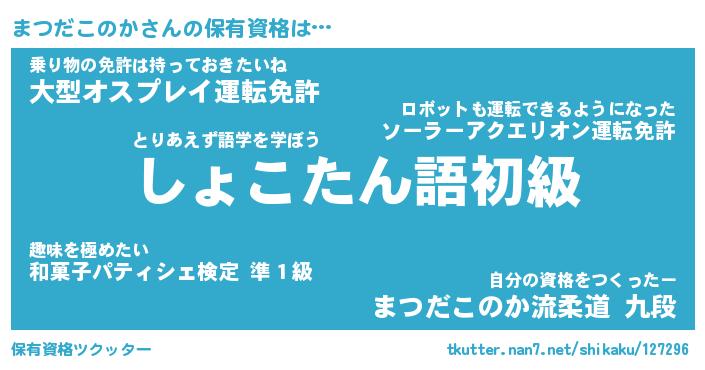 | 伝説のあだ名 | 『封印されしスナイパーまつだこのか』 |