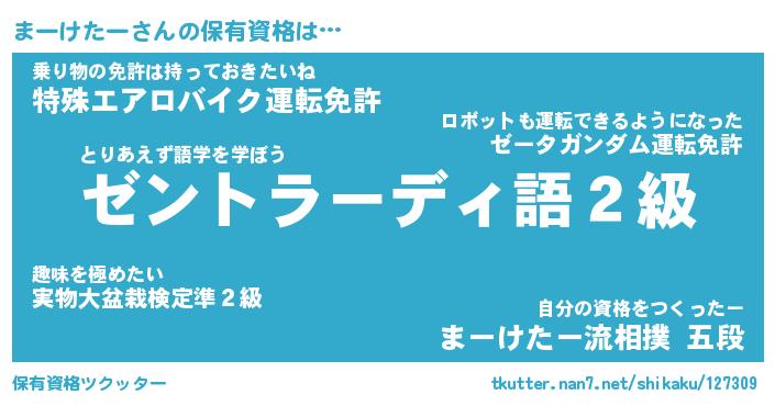 | 男性向けラノベタイトル風あだ名 | 『まーけたーの憂鬱』 |