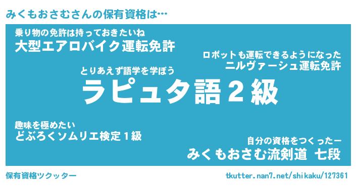 | ヒーロー風カッコイイあだ名 | 『スーパーミクモオサム』『魔戒騎士ミク』 |
