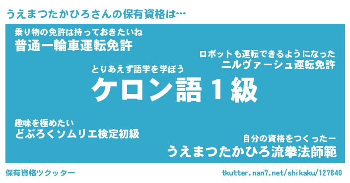 | ツイッター | うえまつたかひろさんのツイッターID『kikurage_man』 |