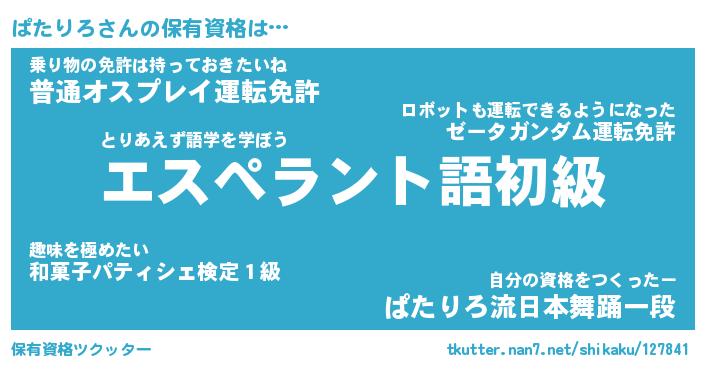 | 女子向けラノベタイトル風あだ名 | 『(仮)ぱたりろのやんごとなき事情』 |