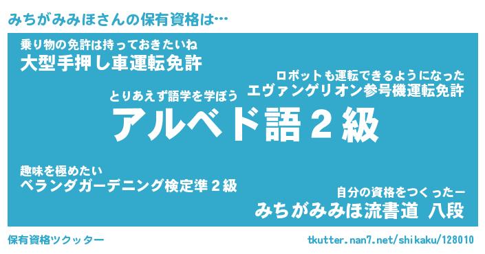 | 男性向けラノベタイトル風あだ名 | 『ミチガミミホアートオンライン』 |