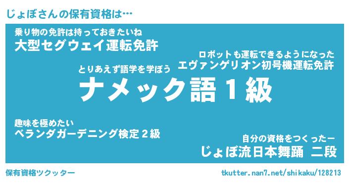 | ポケモン風あだ名 | 『ジョチュウ』『ジョボダネ』 |