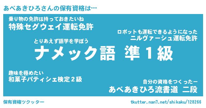 | 肩書あだ名 | 『あべあきひろ店長』『あべあきひろ班長』 |