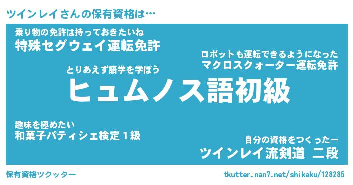 | ヒーロー風カッコイイあだ名 | 『スーパーツインレイ』『炎刃騎士ツイ』 |