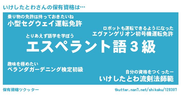 | 男性向けラノベタイトル風あだ名 | 『いけしたとわの憂鬱』 |