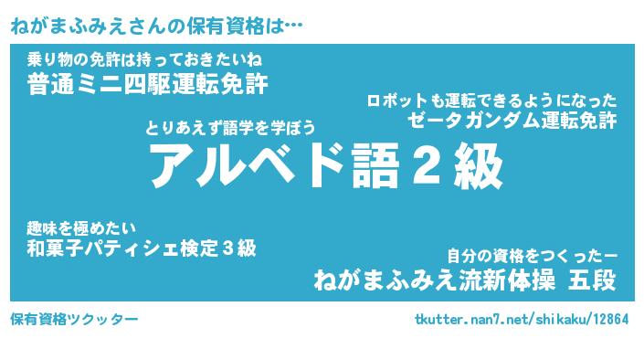 | 肩書あだ名 | 『ねがまふみえCEO』『ねがまふみえ塾長』 |