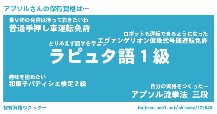 | 意味不明あだ名 | 『ペロリンアプソル』『永久保存アプソル』 |