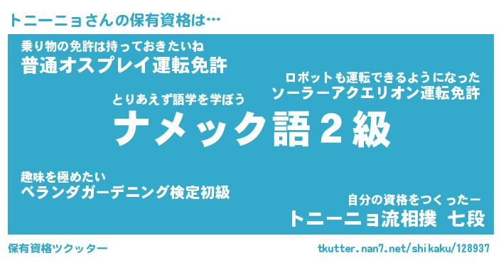 | ファンタジー風あだ名 | 『トニフェル』『エターナルトニーニョー』 |