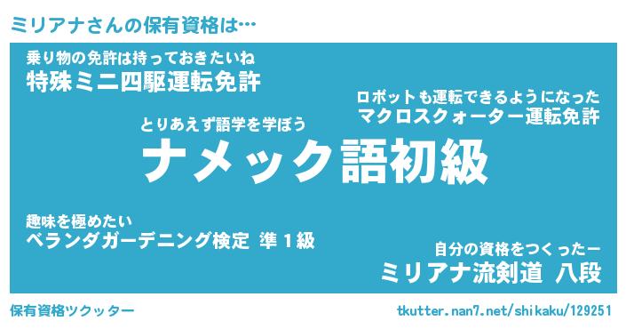 | ファンタジー風あだ名 | 『ミリフェル』『エターナルミリアナー』 |