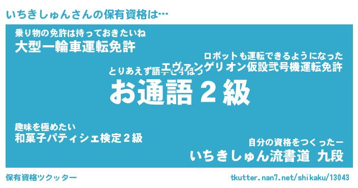 | 男性向けラノベタイトル風あだ名 | 『いちきしゅんの憂鬱』 |