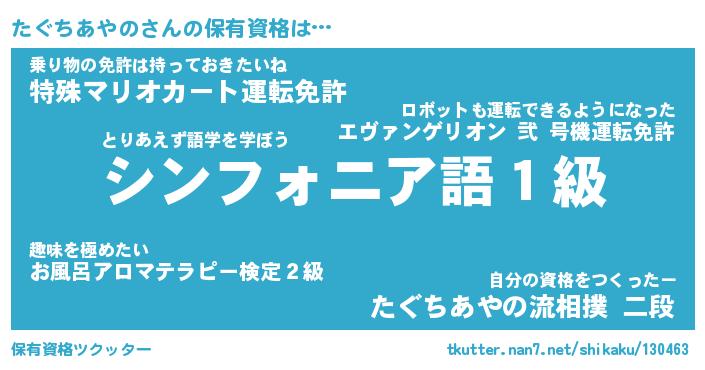 | ヒーロー風カッコイイあだ名 | 『スーパータグチアヤノ』『天弓騎士タグ』 |