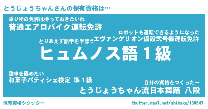 | ツイッター | とうじょうちゃんさんのツイッターID『namakemono_man』 |
