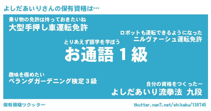 | 伝説のあだ名 | 『不死鳥の竜騎士よしだあいり』 |