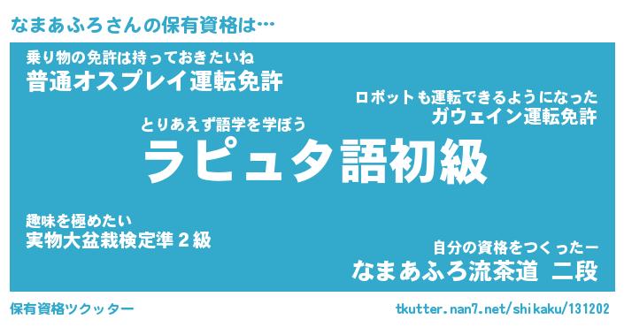 | ファンタジー風あだ名 | 『ナマフェル』『エターナルナマアフロー』 |
