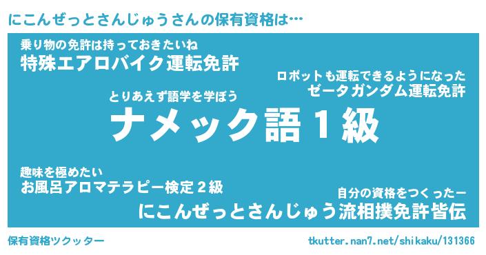| 男性向けラノベタイトル風あだ名 | 『にこんぜっとさんじゅうの憂鬱』 |