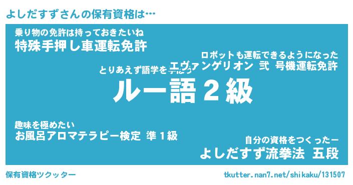 | 伝説のあだ名 | 『封印されし竜騎士よしだすず』 |