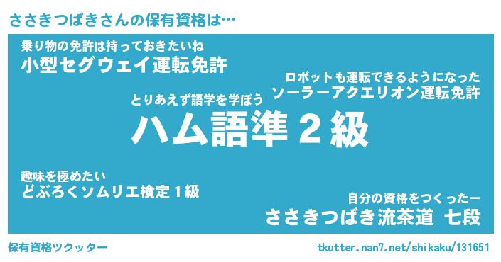 | ヒーロー風カッコイイあだ名 | 『スーパーササキツバキ』『天弓騎士ササ』 |