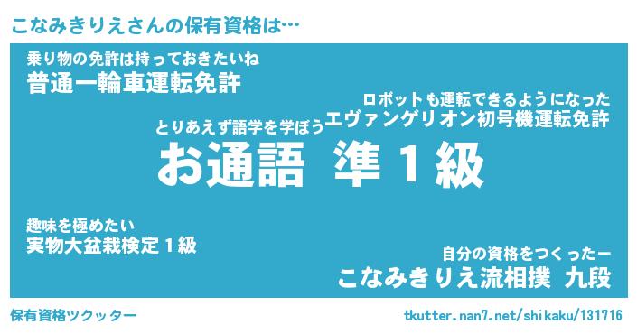 | 男性向けラノベタイトル風あだ名 | 『こなみきりえの憂鬱』 |